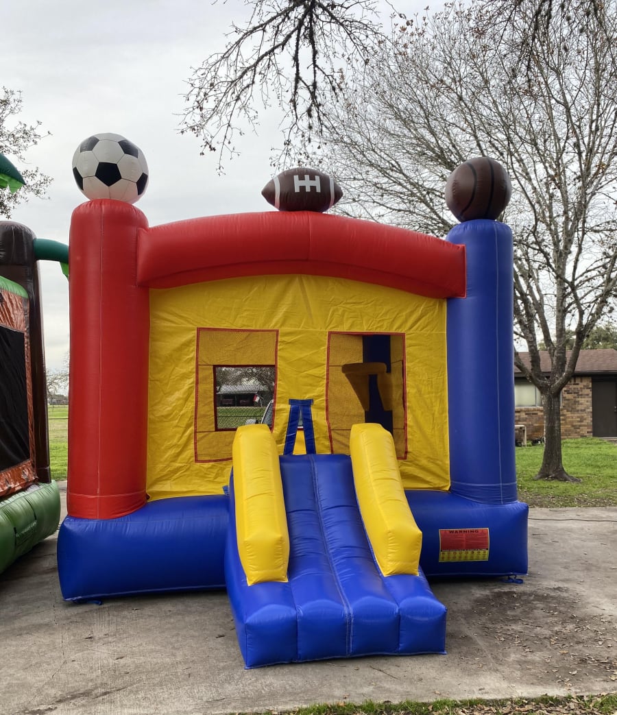 Having a basketball, football, soccer , all star, or little league themed birthday party or celebration? Look no further this bouncehouse with a slide attached is perfect for any birthday party or just for fun.